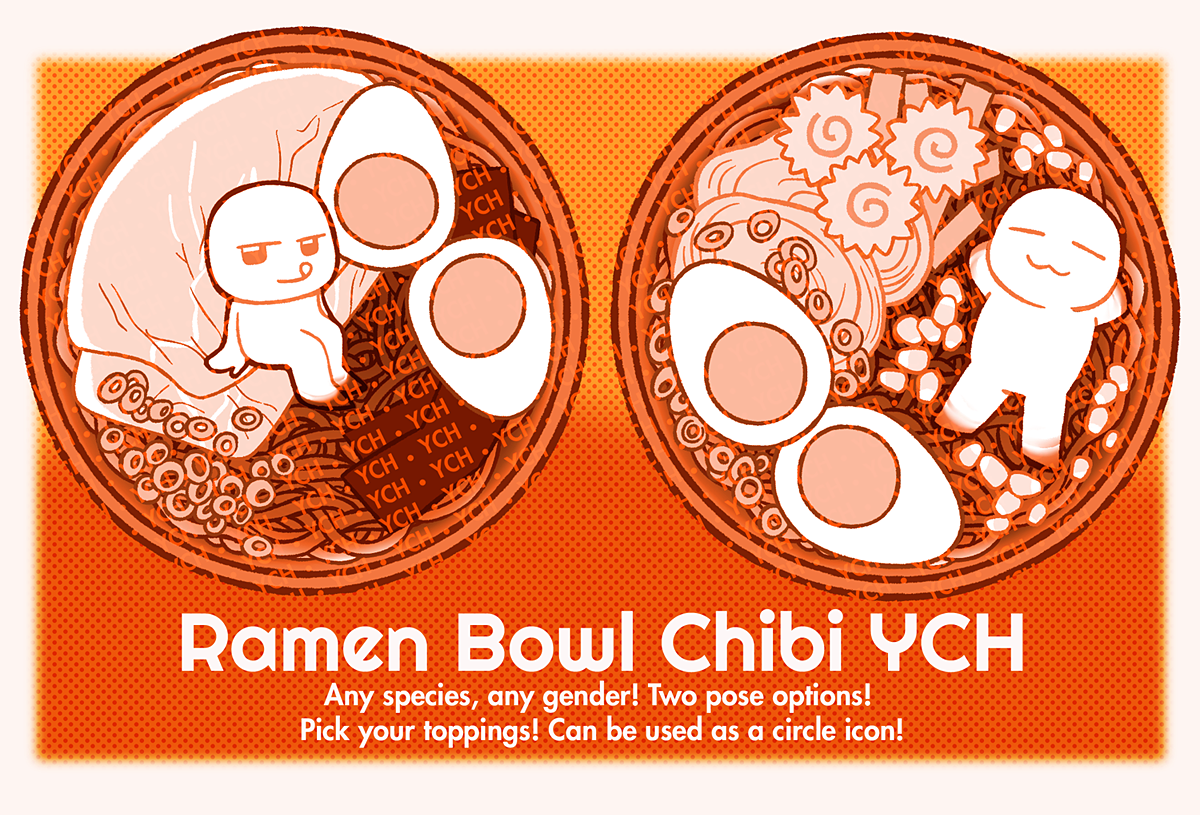 Returning from Citrus Con 2025 is my Ramen Bowl YCH! Any species, gender, or anatomy is fine. Please click through to go to the relevant VGen option and learn more.